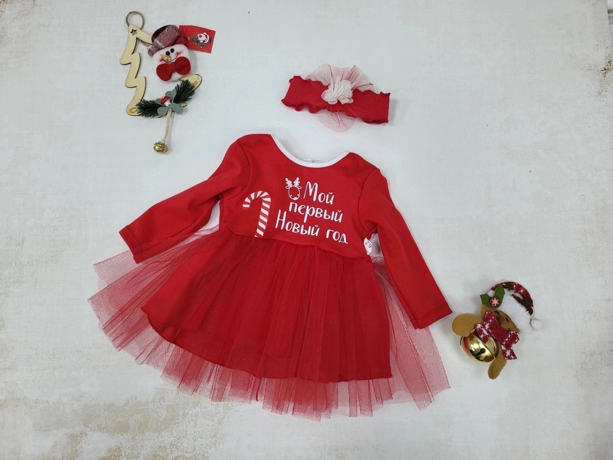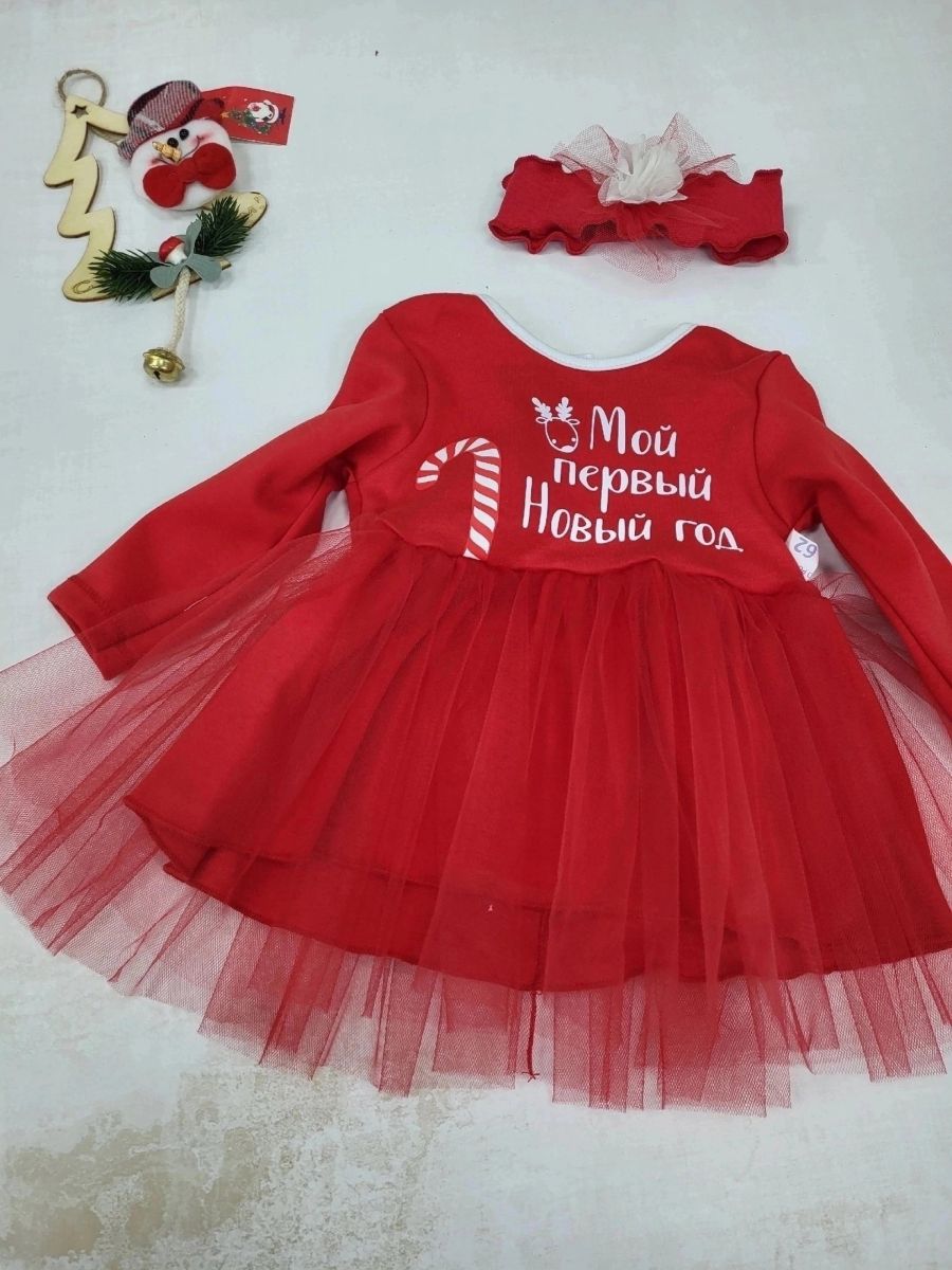 Яркий новогодний наряд для встречи Первого в жизни Нового года малышки. Отличный вариант для фотосессии. Состав: хлопок 100%