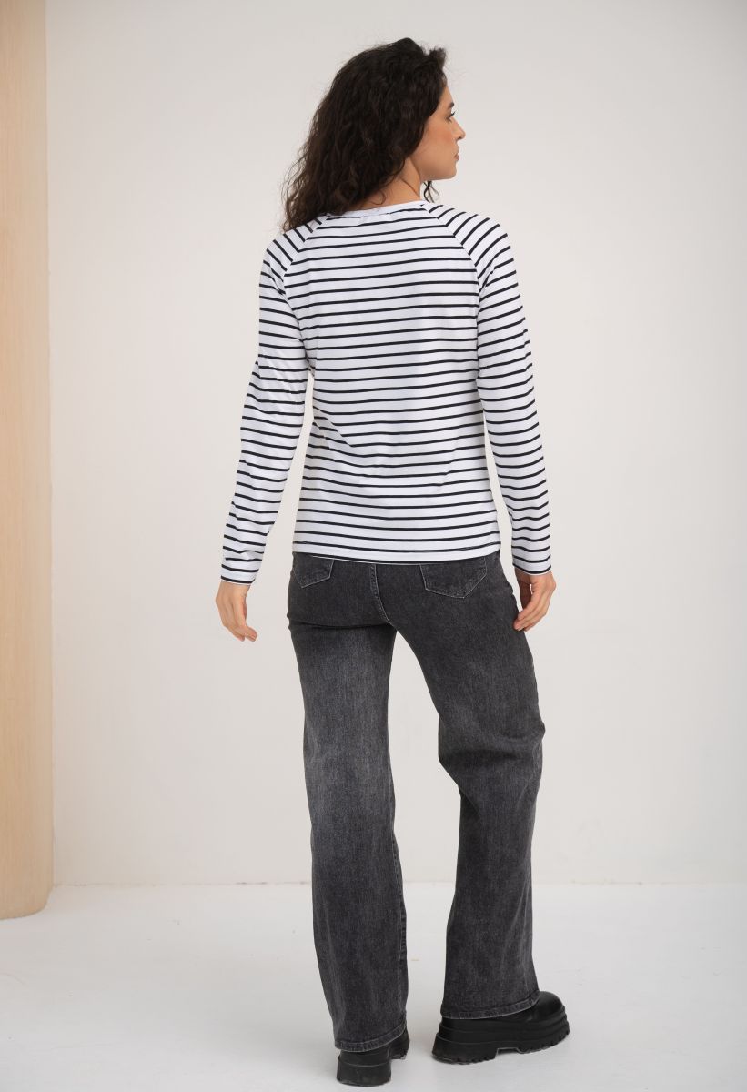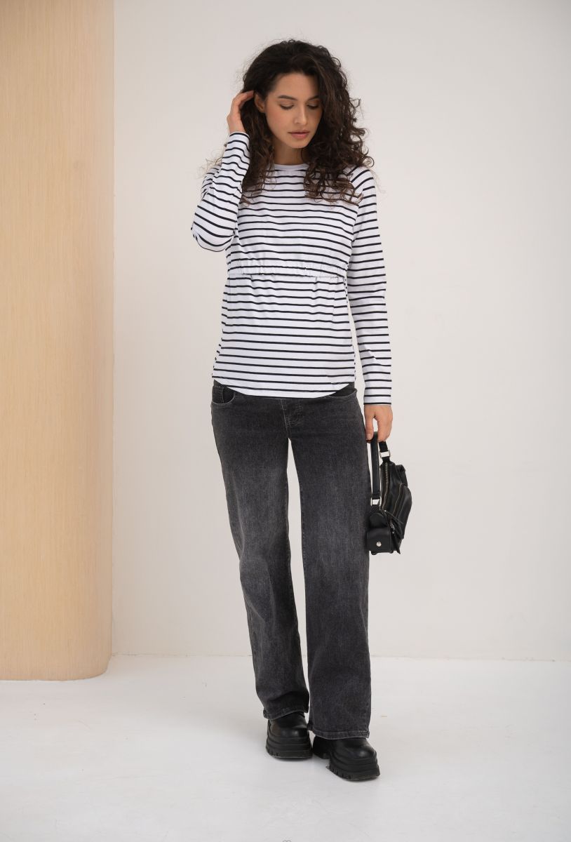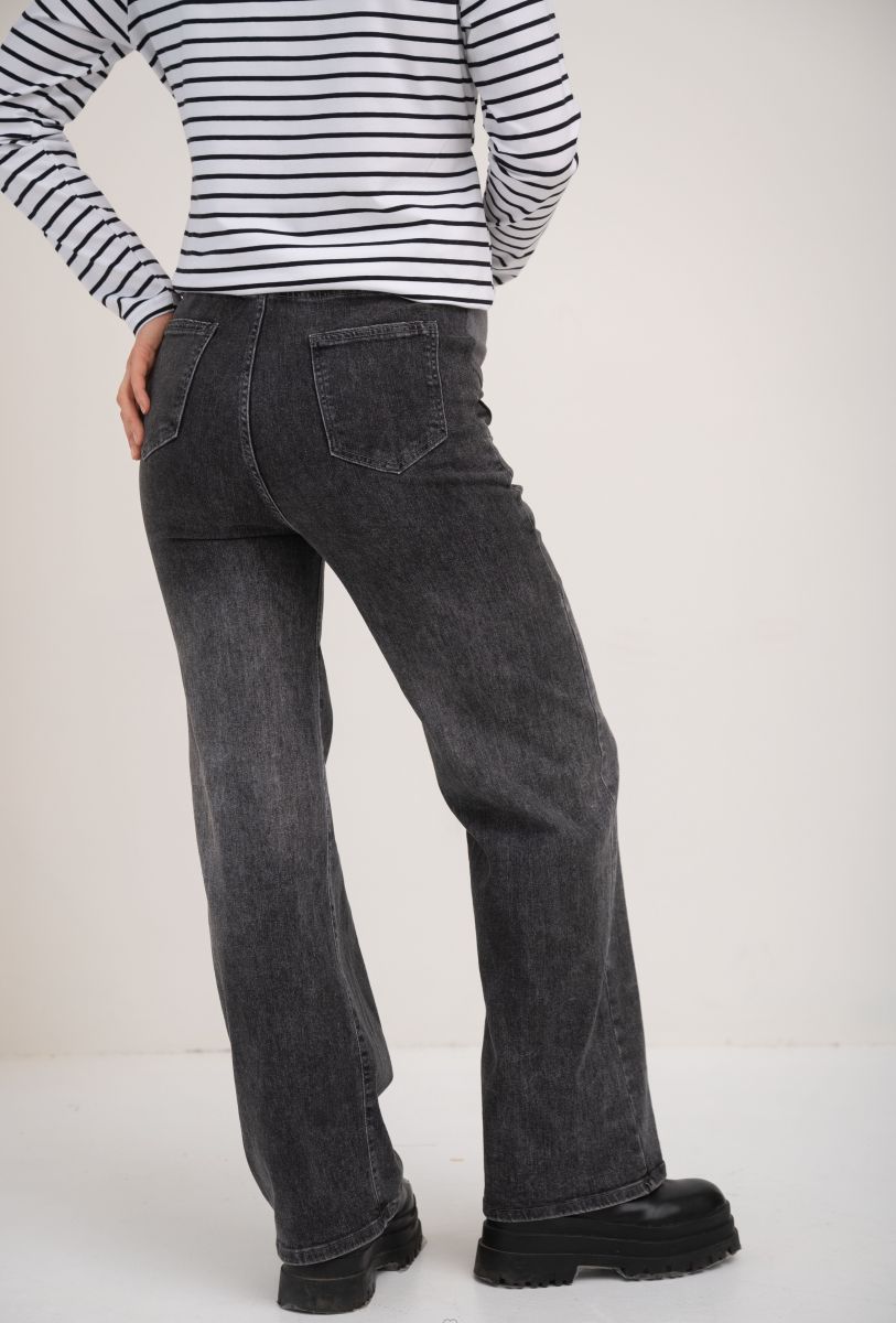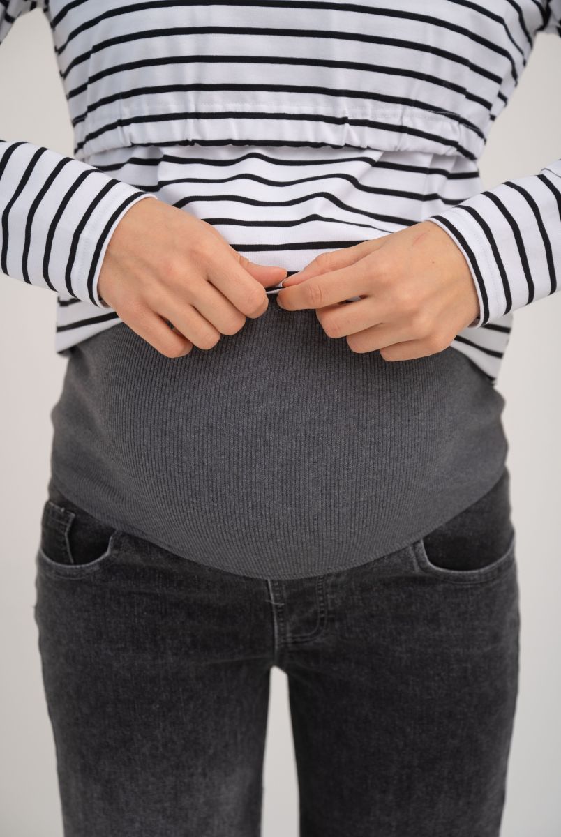 Джинсы для беременных, свободного прямого кроя. Сзади по спинке резинка, обеспечивающая плотное прилегание к пояснице. Высокий трикотажный бандаж на передней части регулируется пуговкой по верху. Выполнены из плотной, мягкой, эластичной джинсы.