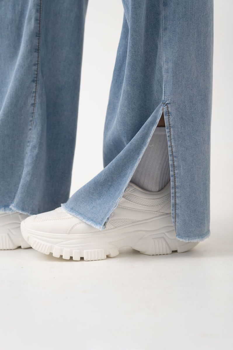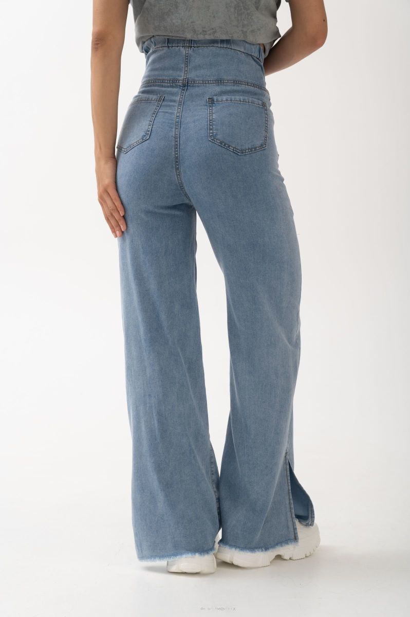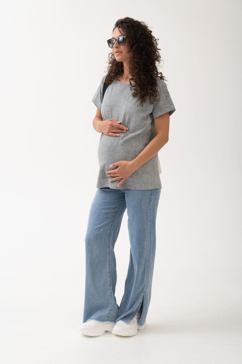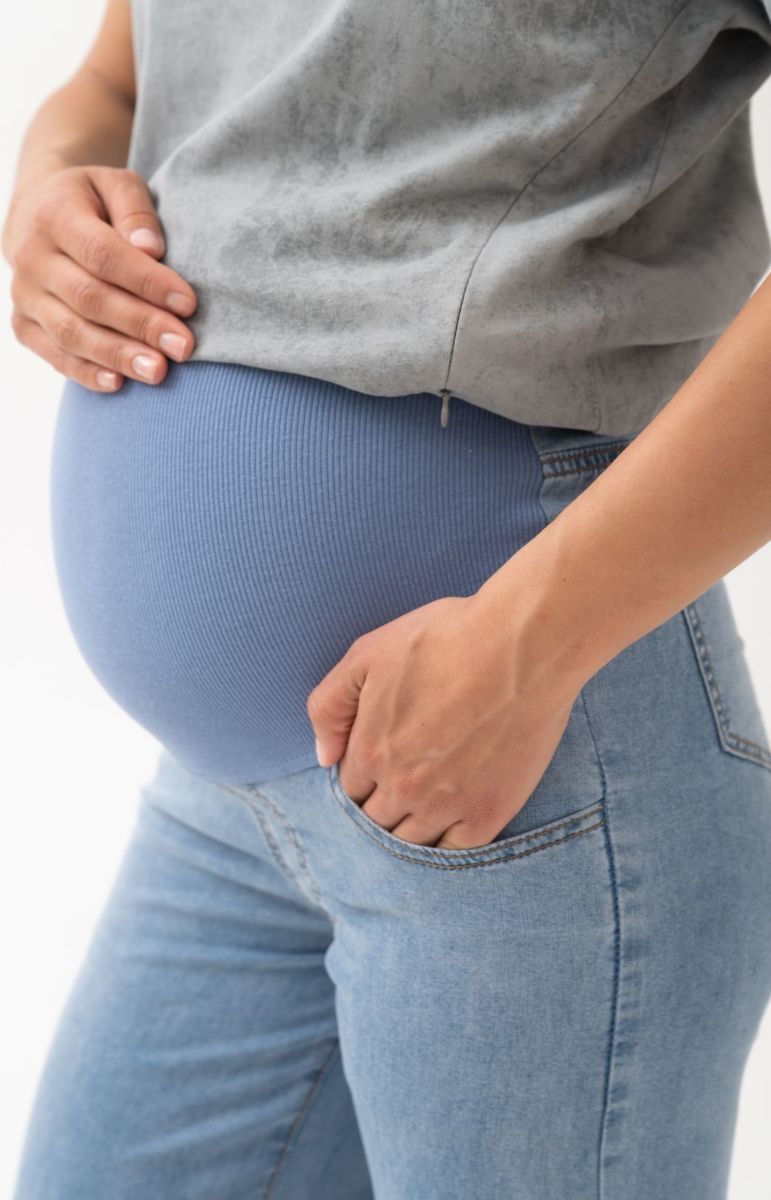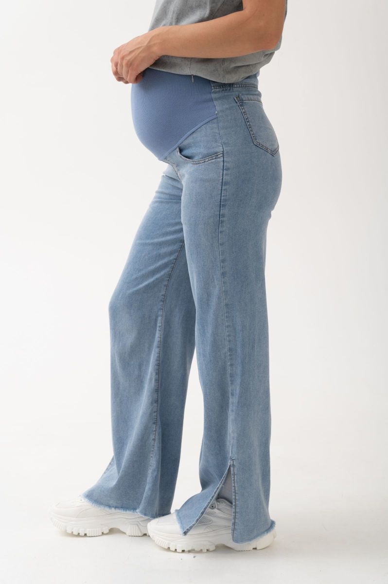 Джинсы для беременных свободного прямого кроя с разрезами и необработанным краем. Выполнены из очень тонкой эластичной джинсы на летний период. Сзади по спинке резинка, обеспечивающая плотное прилегание к пояснице. Высокий трикотажный бандаж на передней части регулируется пуговкой сверху.
