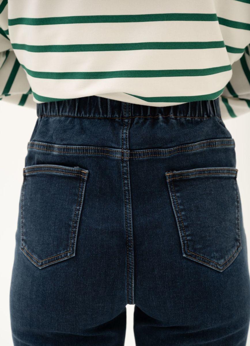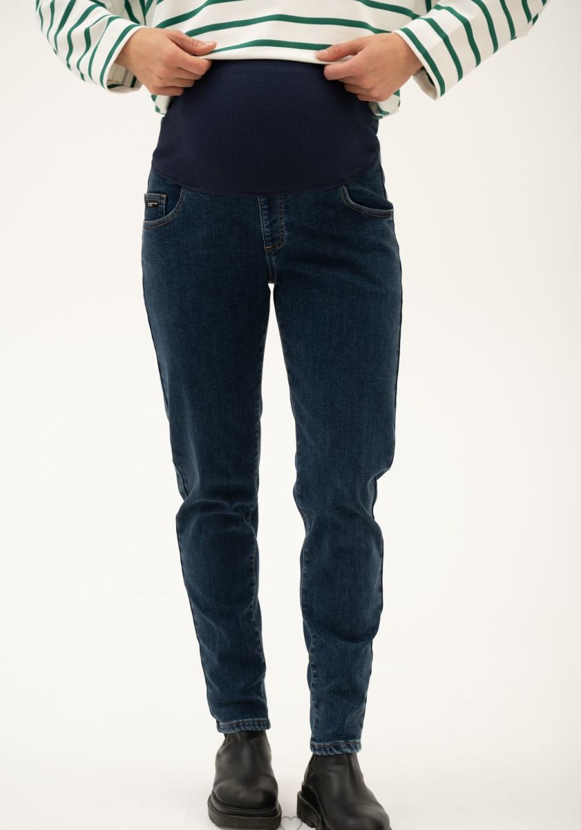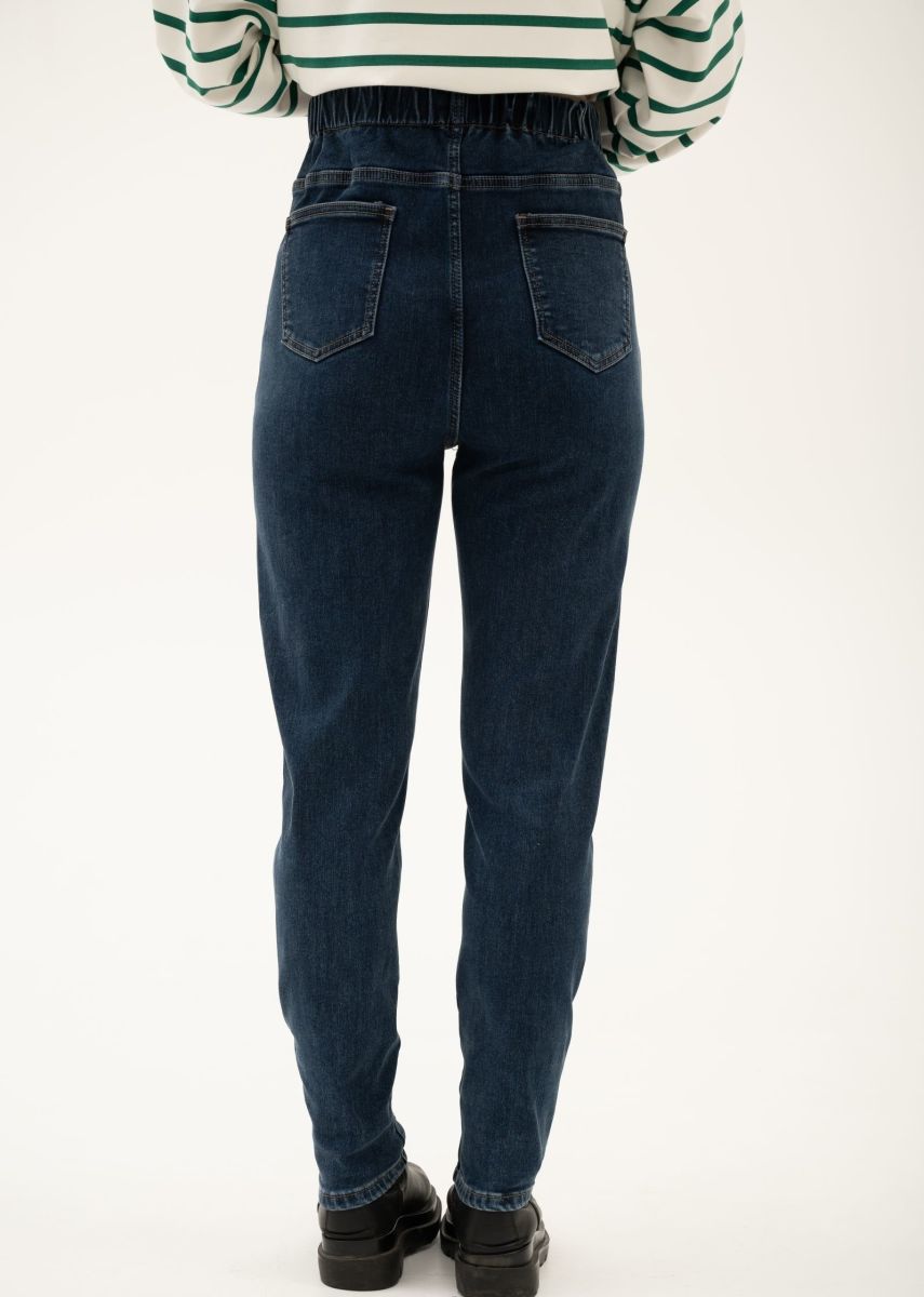 Джинсы для беременных. Выполнены из мягкой, плотной, очень эластичной джинсы с небольшим утеплением (байка). Сзади по спинке резинка, обеспечивающая плотное прилегание к пояснице. Высокий трикотажный бандаж на передней части регулируется пуговкой по верху. Размеры соответствуют 25-XS; 26-S; 27- M; 28-L; 29-XL.