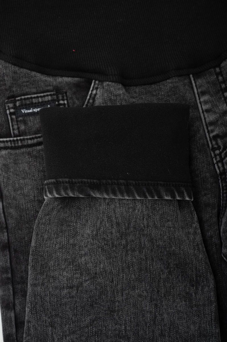 Джинсы для беременных с небольшой декоративной нашивкой на переднем кармане. Выполнены из мягкой, плотной, хорошо тянущейся джинсы с очень эластичной ворсовой изнанкой (тонкий флис). Сзади по спинке резинка, обеспечивающая плотное прилегание к пояснице. Высокий трикотажный бандаж на передней части регулируется пуговкой по верху. Размеры соответствуют 25-XS; 26-S; 27- M; 28-L; 29-XL