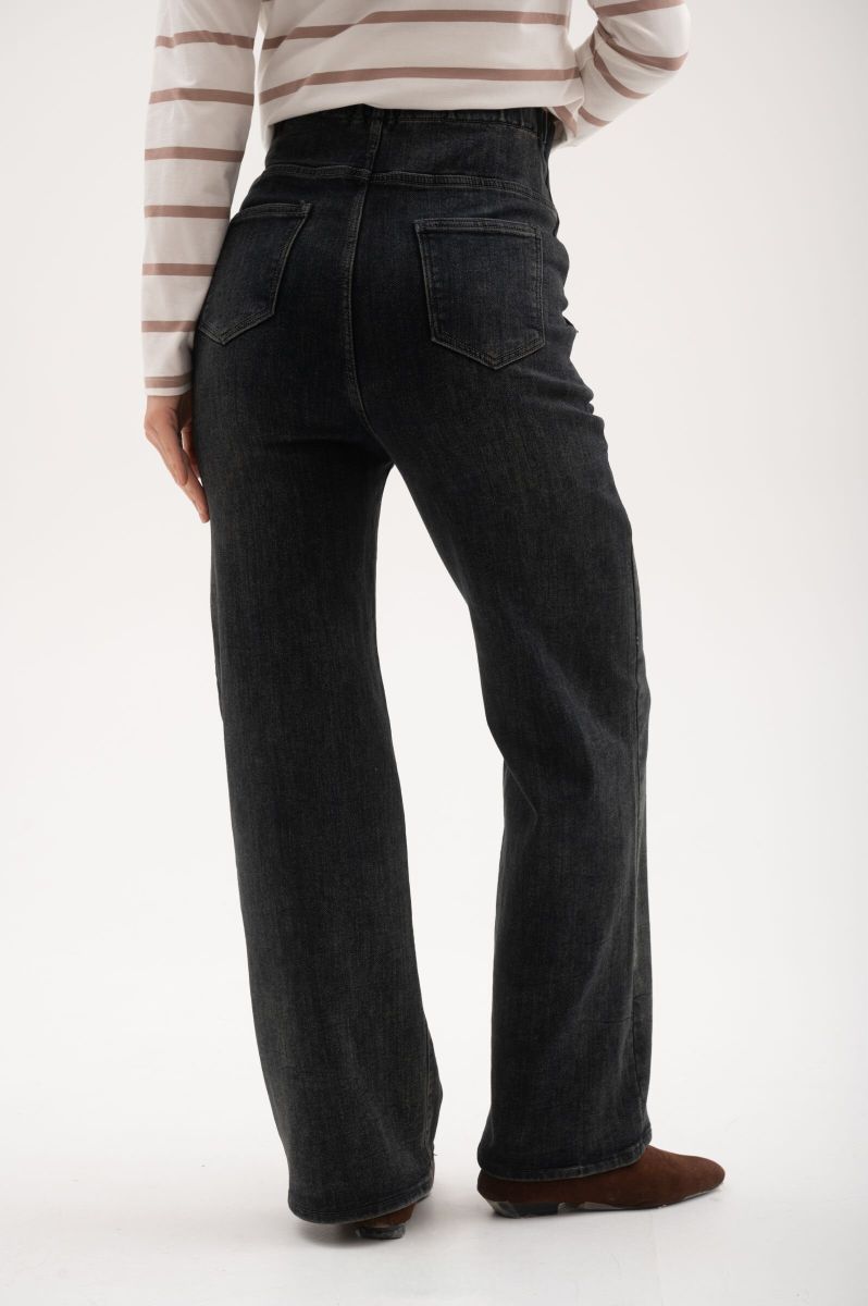 Утепленные джинсы свободного прямого кроя для беременных. Сзади по спинке резинка, обеспечивающая плотное прилегание к пояснице. Высокий трикотажный бандаж на передней части регулируется пуговкой по верху. Выполнены из плотной, мягкой, эластичной джинсы с петельчатой изнанкой.