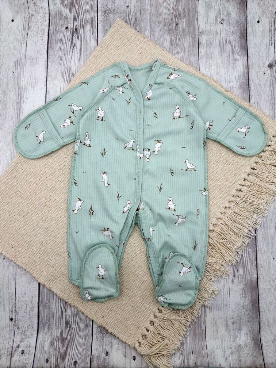 Комбинезон-слип из серии "Гуси-маргаритки" с закрытыми ножками. Швы наружу.