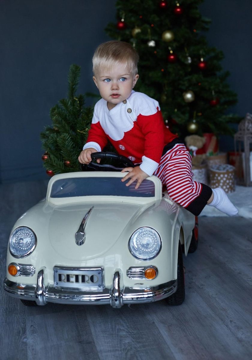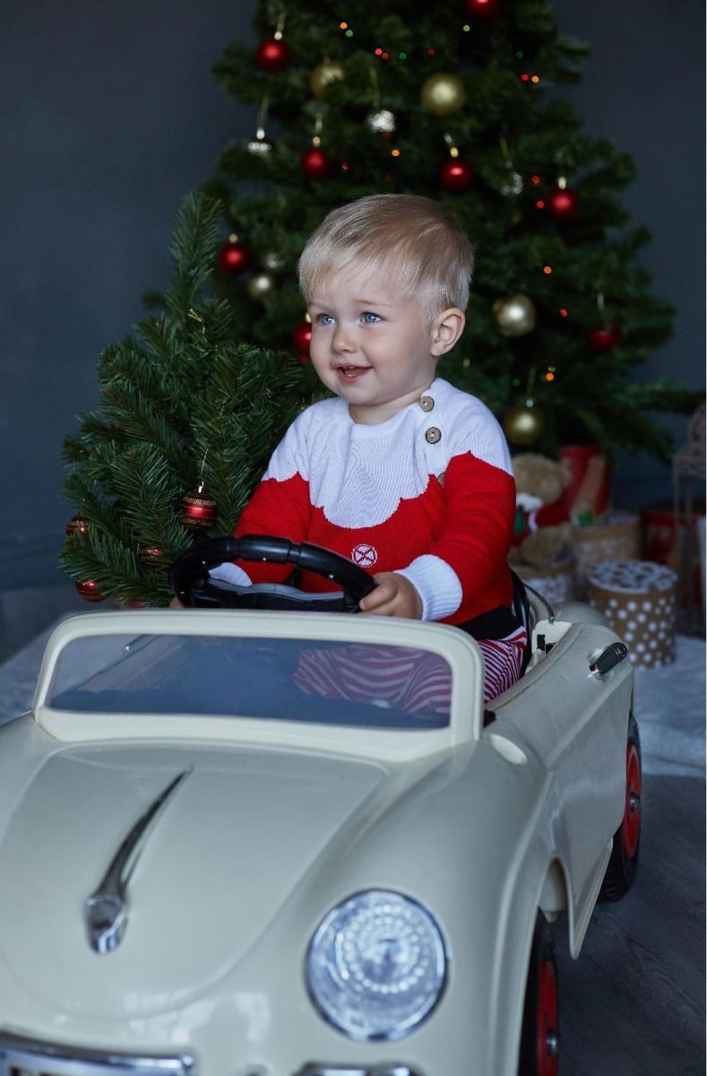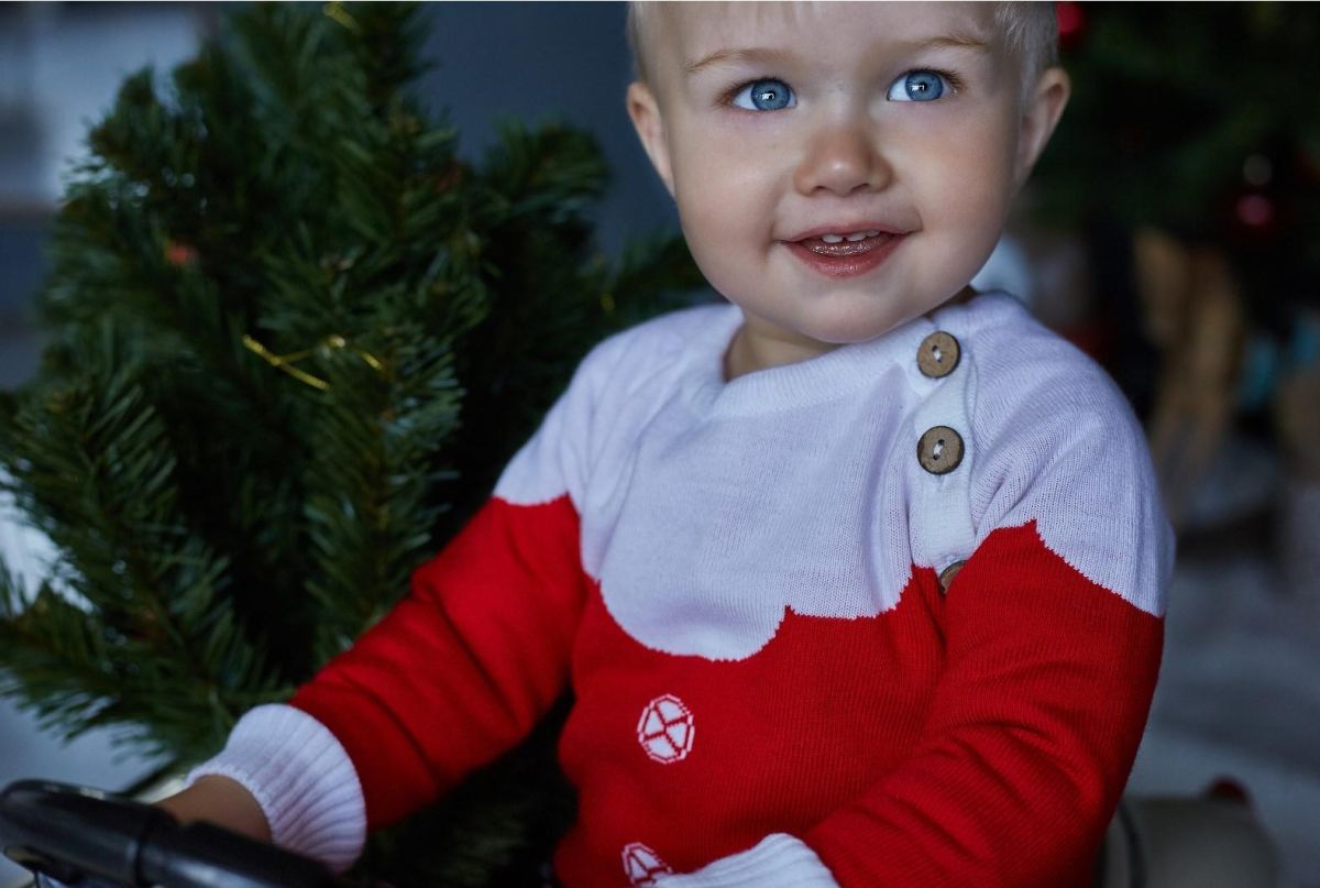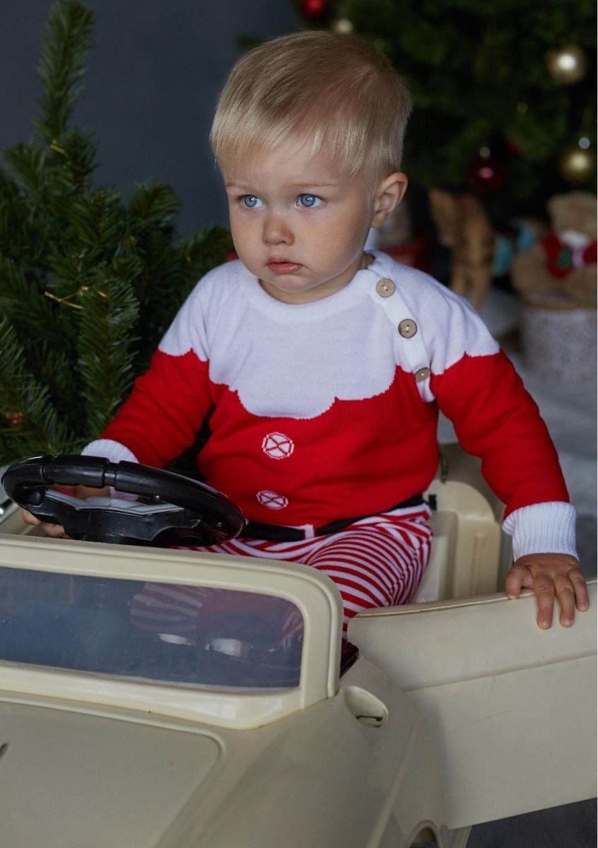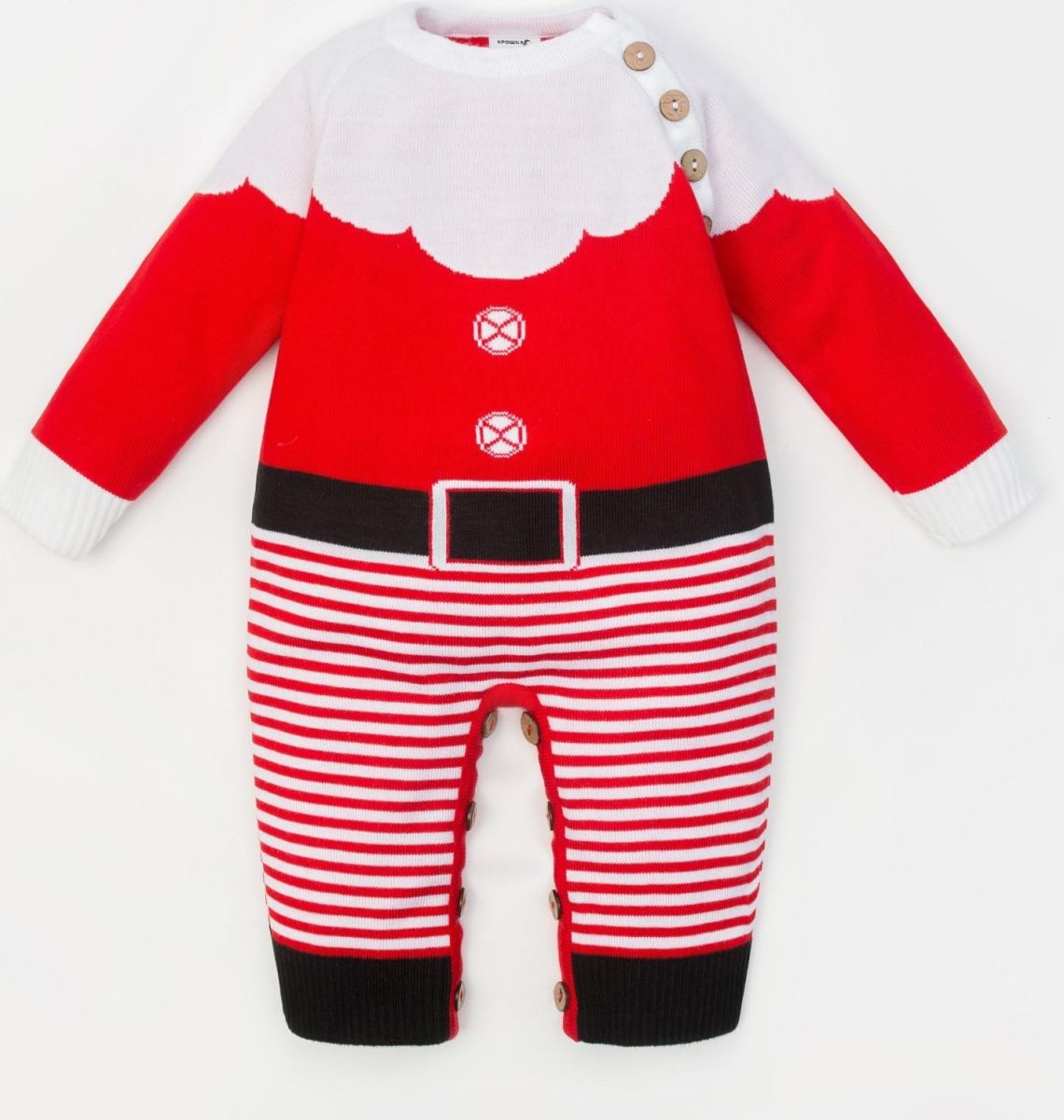 Тепленький вязаный комбинезон для малыша с новогодней тематикой станет идеальным нарядом для встречи первого в жизни Нового года, фотосессии, а также отличным подарком на праздник.