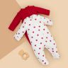 Набор для новорожденного из интерлока, отделка бейкой. Состоит из двух комбинезонов. 1 комбинезон - яркий принт "Сердечки", 2 комбинезон - однотонный (красный)