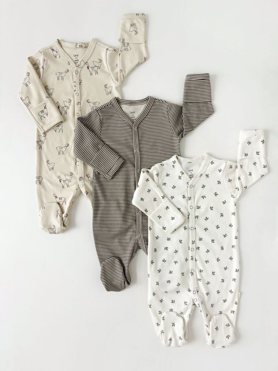 Супер удобные слипы! Набор из трех комбинезонов для малыша. Выполнены из 100% хлопка. Застежка на кнопках для удобного переодевания малыша.