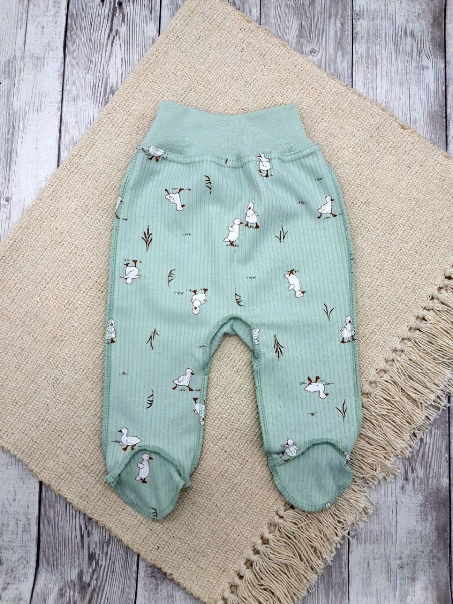 Ползунки из серии "Гуси-маргаритки" на широкой резинке с закрытыми ножками. Швы наружу.