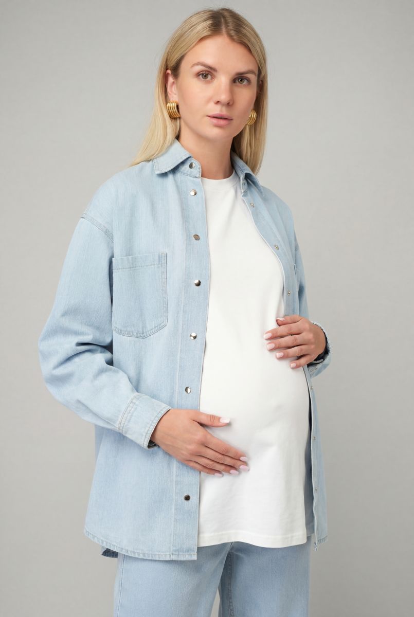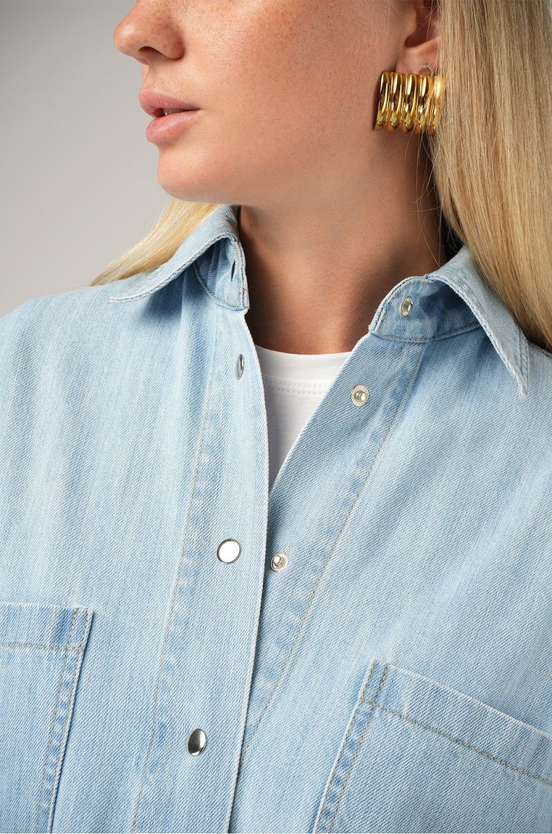 Женская джинсовая рубашка оверсайз — идеальный выбор для стильной капсулы. Выполнена из плотного хлопкового денима, который дарит комфорт и долговечность.