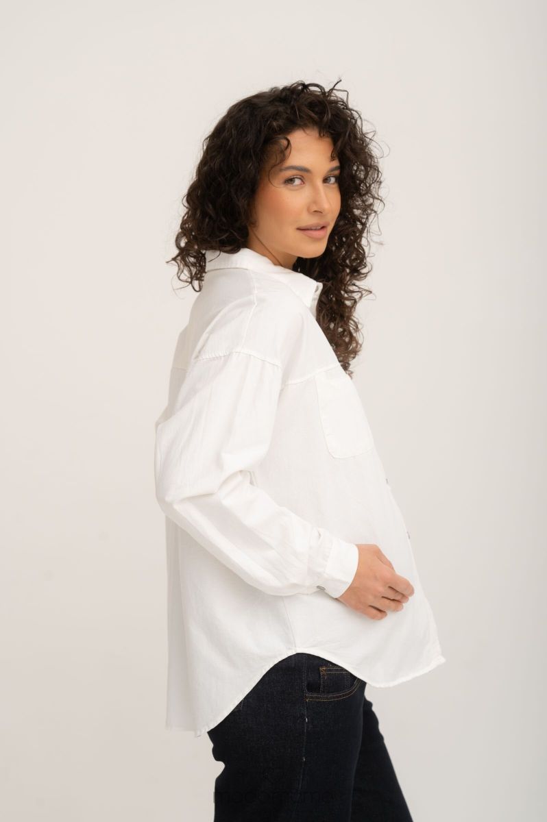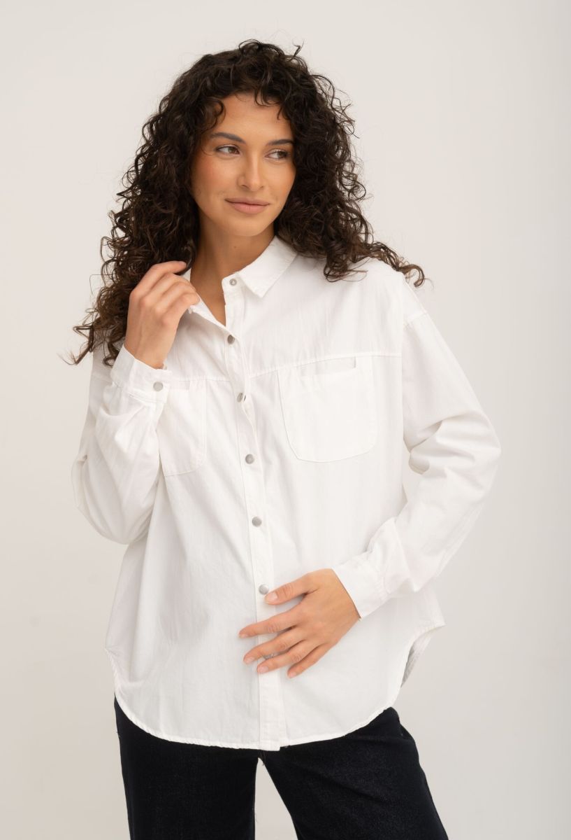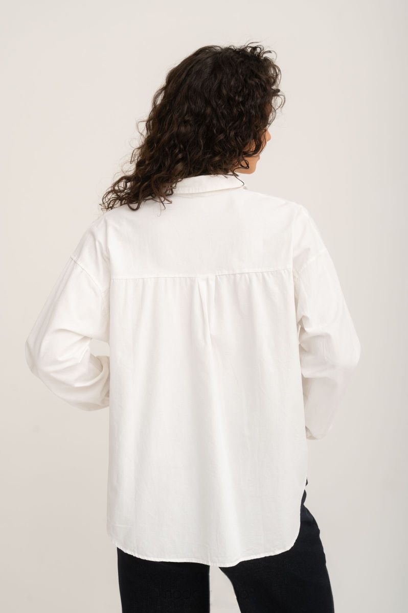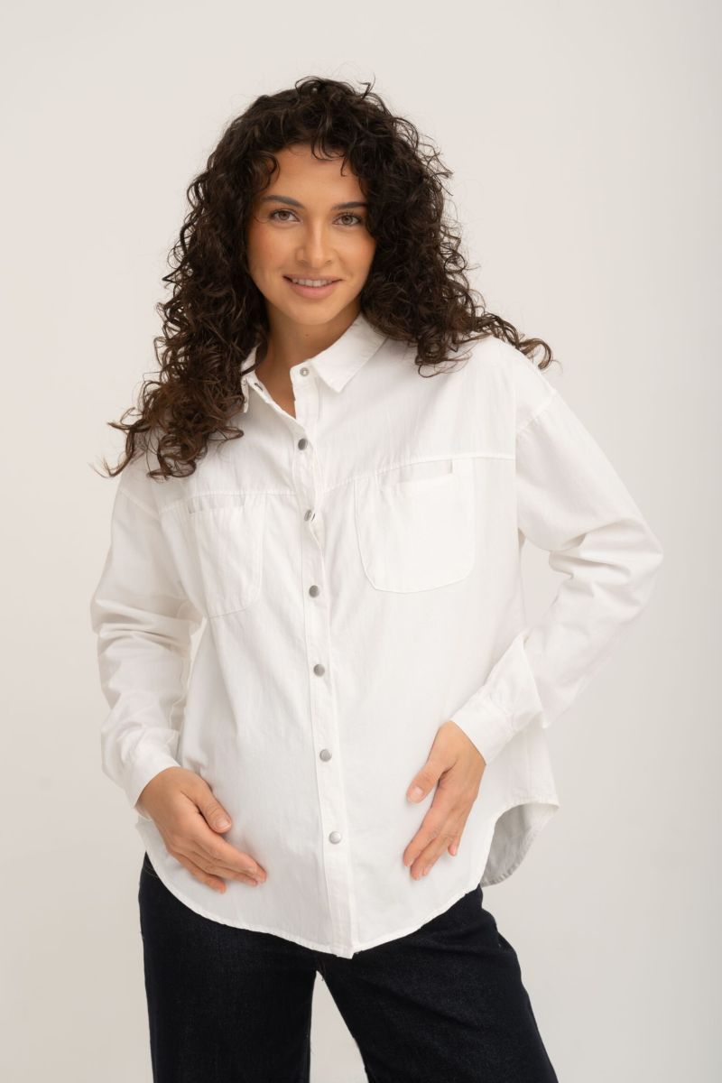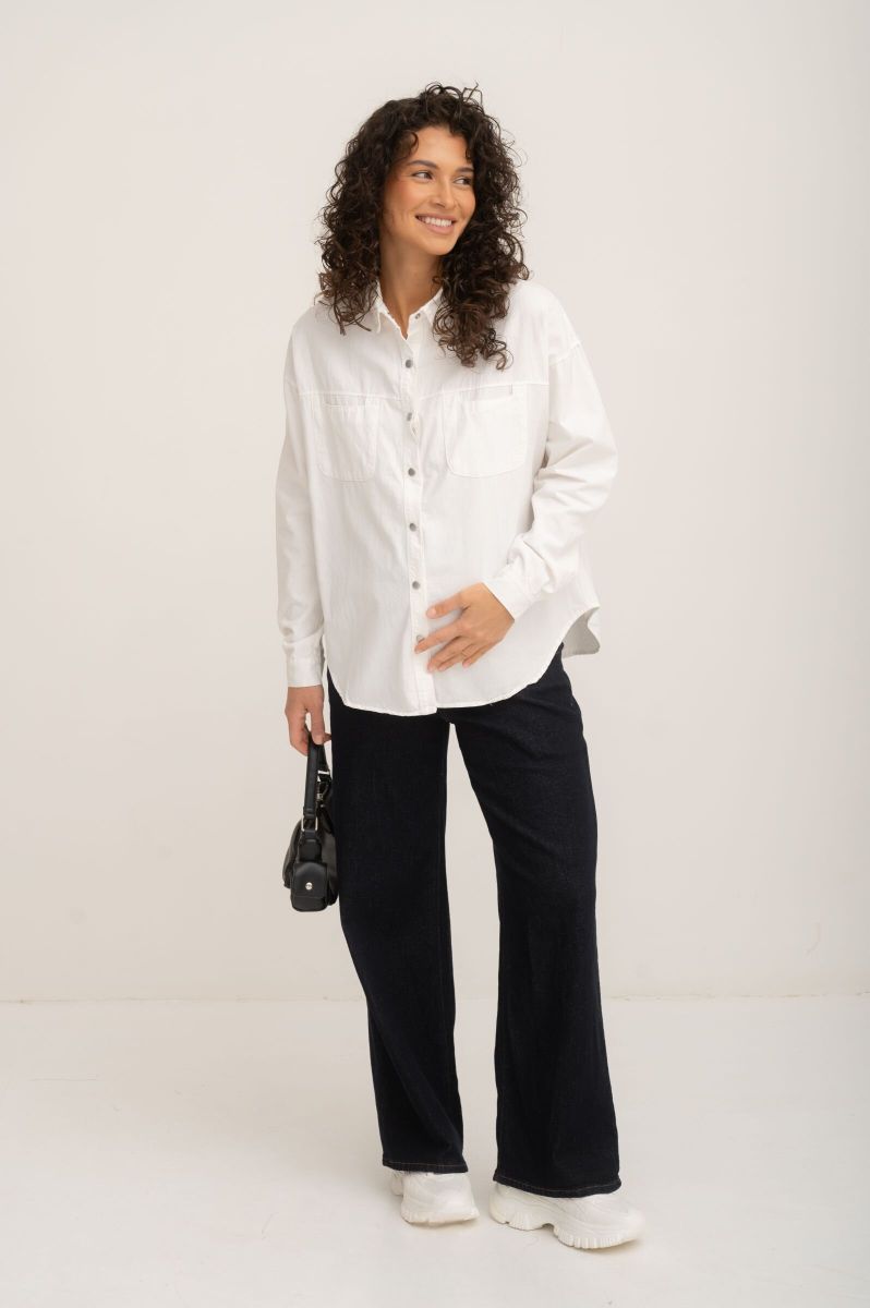 Рубашка на кнопках свободного универсального силуэта в стиле оверсайз со спущенным плечом. Выполнена из мягкой тянущейся джинсы средней плотности.
