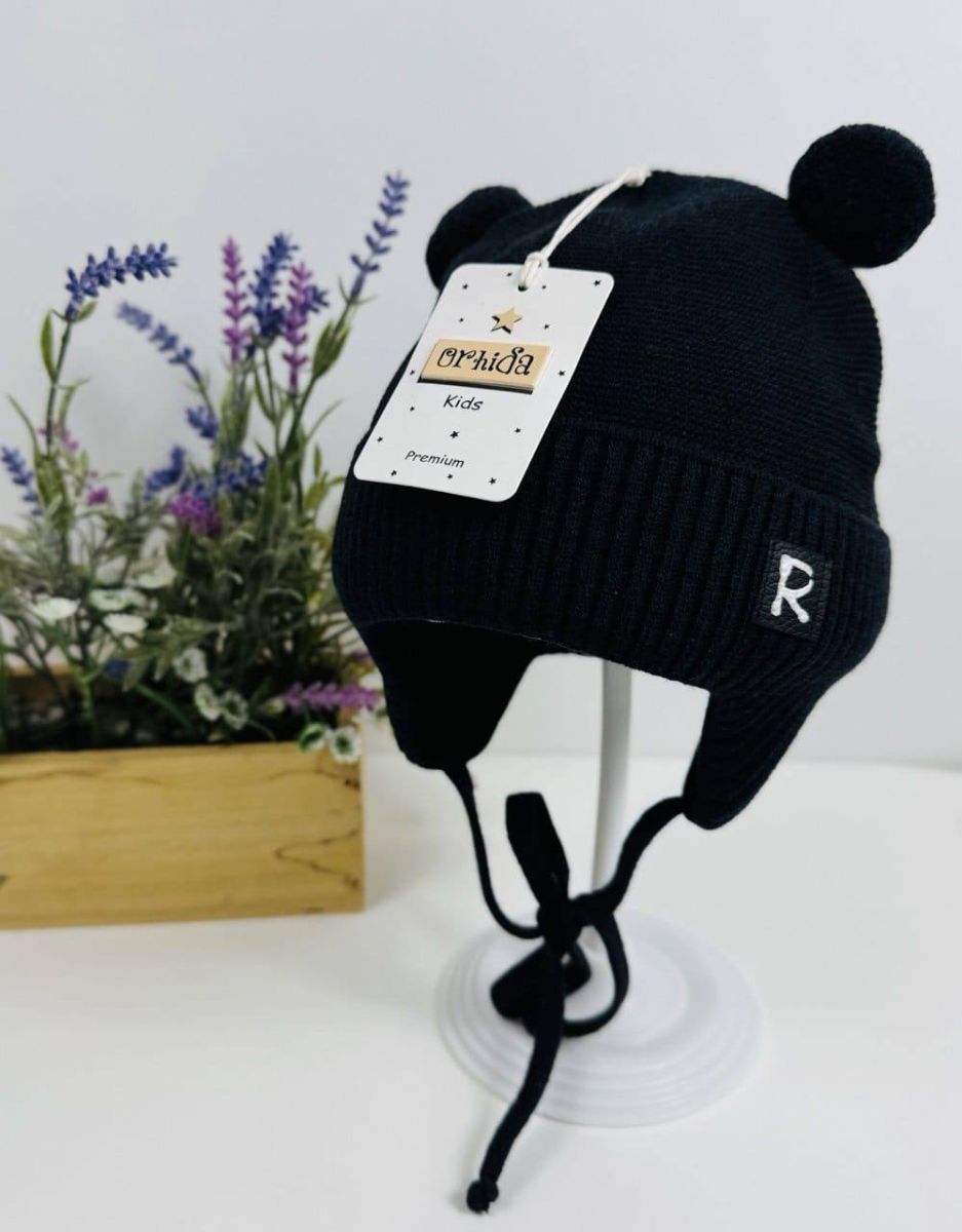 Шапочка с завязками и милыми помпонами-ушками для малыша от 6 до 18 месяцев.